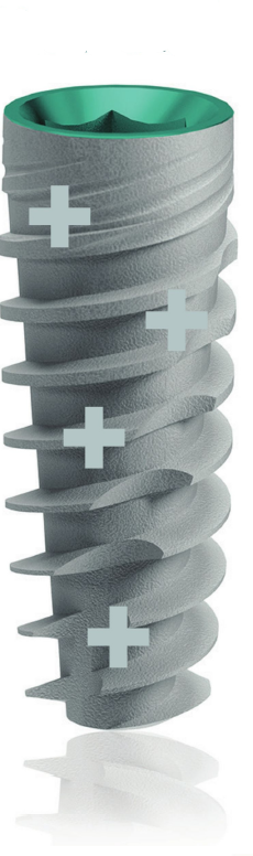- Reduce concentrația de stres asupra osului crestal și maximizează volumul osos în jurul gâtului de implant