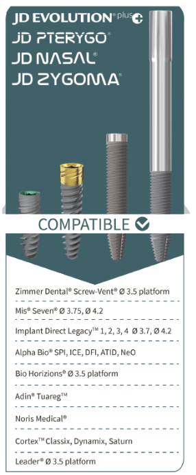 Implantul dentar JDEVOLUTION® PLUS+ este disponibil în diametrele și lungimile prezentate în acest grafic: